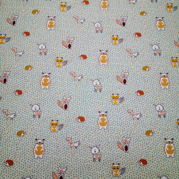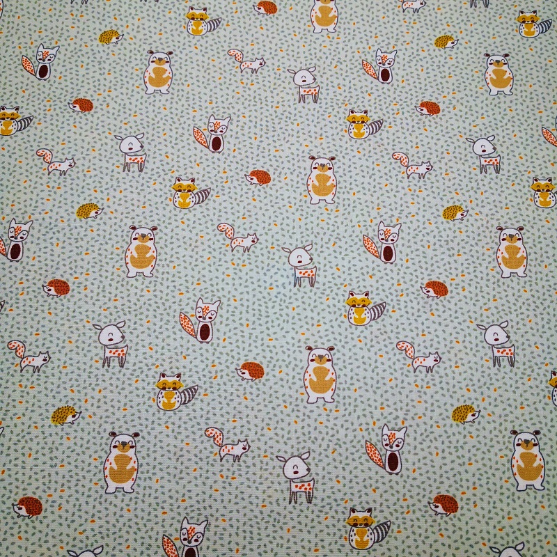 Tela de estilo nórdico con estampado de pequeños animalitos del bosque. Colores muy suaves perfectos para un dormitorio infantil. Con ella también puedes confecccionar alguna prenda de vestir como una divertida blusita.