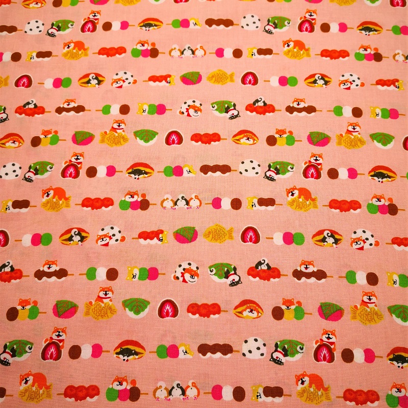 Tela japonesa cuyo estampado representa los dulces típicos. Vivos colores y diseño naif típico de los japponeses. Utiliza esta tela para cualquier proyecto, ya sea de patchwork, costura creativa o confección si lo tuyo es la alegría y el buen rollo.
