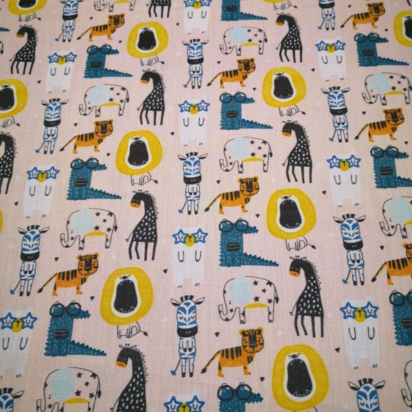Un cocodrilo con gafas, un elefante con estampado de estrellas, una jirafa con lunares… Tela perfecta para cualquier proyecto de costura como un top o una falda. También puedes usarla en tus creaciones de patchwork, como los animalitos no son muy grandes te dará mucho juego para crear multitud de bloques diferentes.