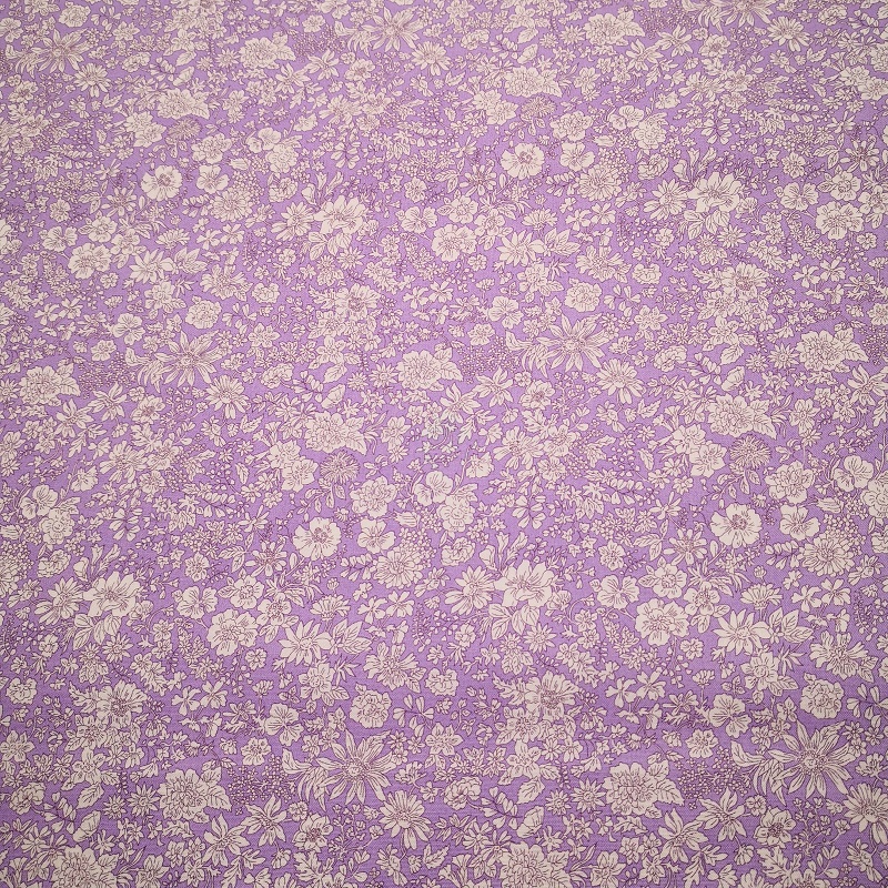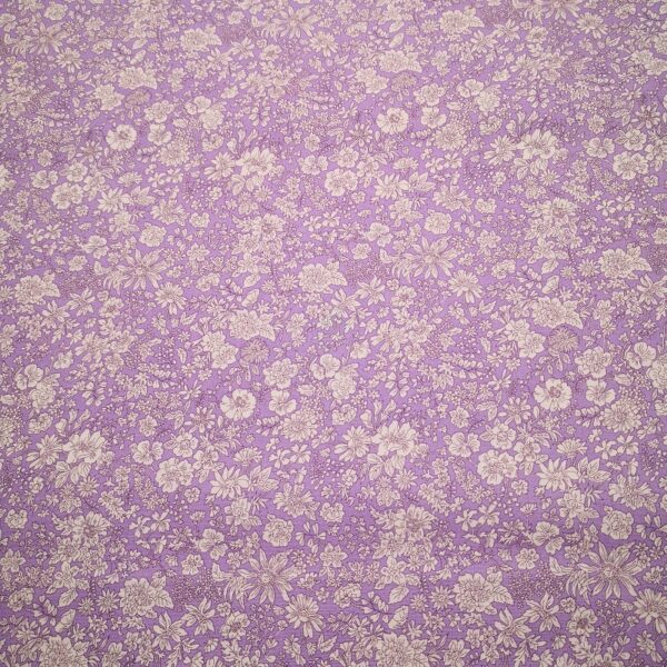 Clásico estampado de flores sobre un moderno fondo violeta. Tela de patchwork diseñada por la casa Liberty que también puedes utilizar para confección o para tus proyectos de costura creativa.