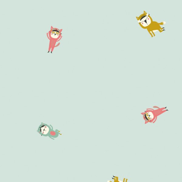 Alegres niños cuyos pijamas son divertidos disfraces de animales. Esta tela impermeable es perfecta para un chubasquero, un gorrito, un cambiador para bebé o un neceser.