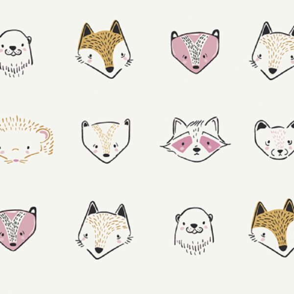Pequeños habitantes del bosque, un erizo, un mapache, una nutria, en suaves y modernos colores perfectos para realizar un quilt  o cualquier complemento para un dormitorio infantil como un cojín o una caja para guardar juguetes. Las pequeñas cabecitas miden cinco centímetros.
