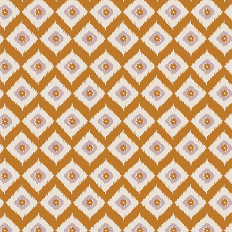 Estampado geométrico de inspiración étnica de colores suaves. Tela de patchwork con la que puedes confeccionar, además de quilts, cojines o bolsas de estilo moderno… También es apropiada para confección.