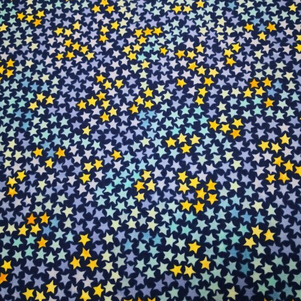 Multitud de estrellitas de colores. Tela de patchwork, puedes confeccionar una colcha, una mochila o una bolsita para el almuerzo. También puedes confeccionar con ella un vestidito o una blusita.